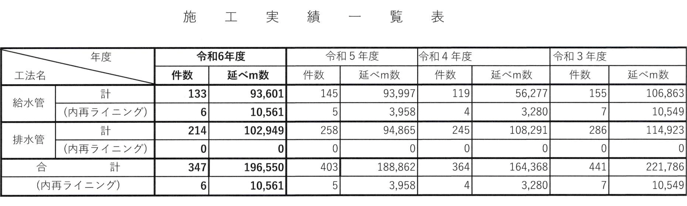 令和6年度の施工実績がまとまりましたので、お知らせいたします。